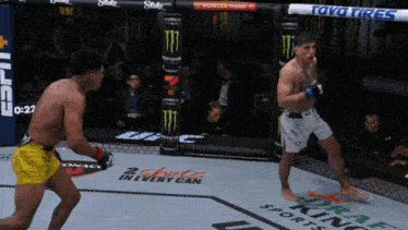 Kyoji builds ass-whoopin's from the ground up. He wastes no time decapitating your ankles. Youāll clickity clack your way out of that bish on wooden legs after fighting Horiguchi. Youāll be calling the Orkin man real quick. Youāll be looking ridiculous walking around with blue tents on your legs, wishing you hadnāt taken a fight with Horiguchi. My man had Ulanbekov looking like he was walking on hot sand on the beach without chanclasāhad him looking like he was stepping on Legos in the living room. That fight looked like a schoolyard ass-whoopinā. Team Khabib was just waiting to jump in. Horiguchi finished Ulanbekov with a head kick and a follow-up rear-naked choke. Never try to catch leg kicks, kids. Horiguchi placed a collect call on the shin phone, and Tagir accepted the charges. Kids these days will never understand the struggle.