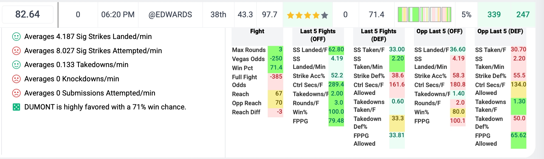 Dumont will be the (-200) favorite, and Edwards is the (+170) live-ish dog. The fact that Dumont isnât a (-500) favorite is the exact reason why Edwards has a chance to win. Dumont canât be trusted like Tiger Woods driving Uber. The only play is a decision. And if youâre playing this one, youâre a sick individual. But youâre my type of individual. Norma Dumont via decision. On wax.
