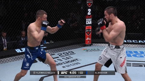 Seventy-two percent vs. two and a half takedowns per fifteen minutes: that’s what this matchup boils down to. Volkov’s takedown defense versus Alemeida’s takedowns. Alemeida chain wrestles, so Volkov will have to defend multiple attempts per shot. In previous fights, Volkov has displayed solid takedown, but he has also been dominated on the mat. As he was against Aspinall. If Volkov can get out of the first round, we’re going to Sizzler. He will box Almeida’s face... off. On some Castor Troy type-ish. The teep is the key for Volkov. He can use the up the middle attack to catch Almeida level changing.