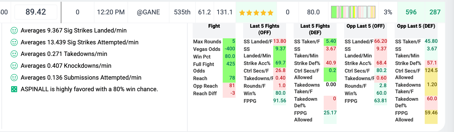 Aspinall: DK: $9.4k | Gane: DK:$6.8k