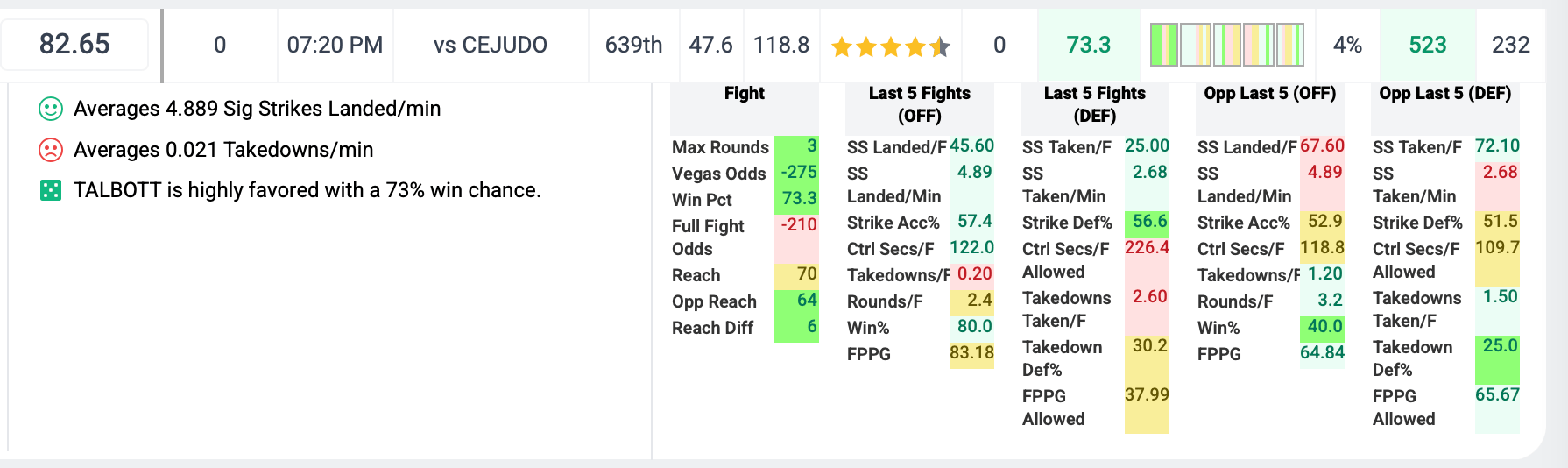 Cejudo: DK: $7k | Talbott: DK: $9.2k