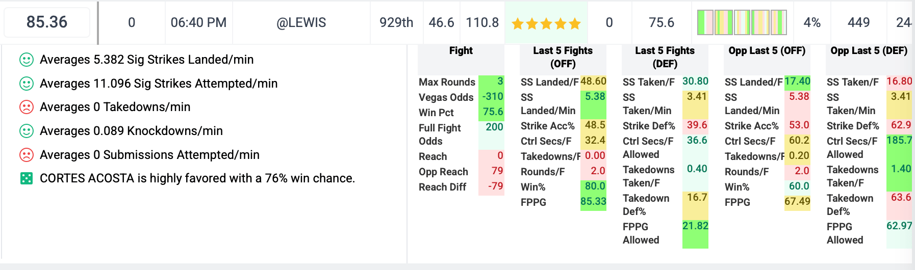 Lewis: DK: $7k | Acosta: DK:$9.2k