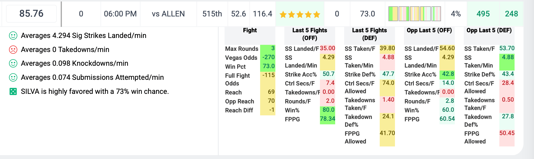 Allen: DK: $6.8k | Silva: DK: $9.4k