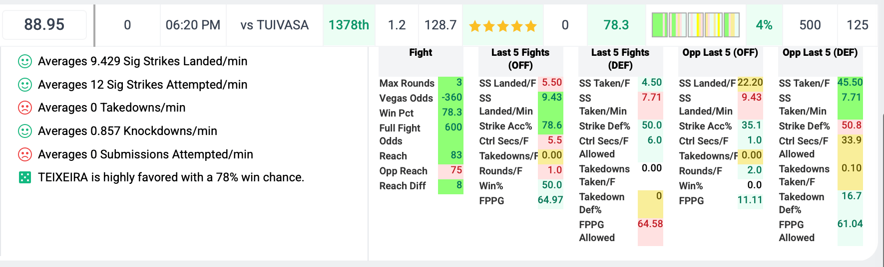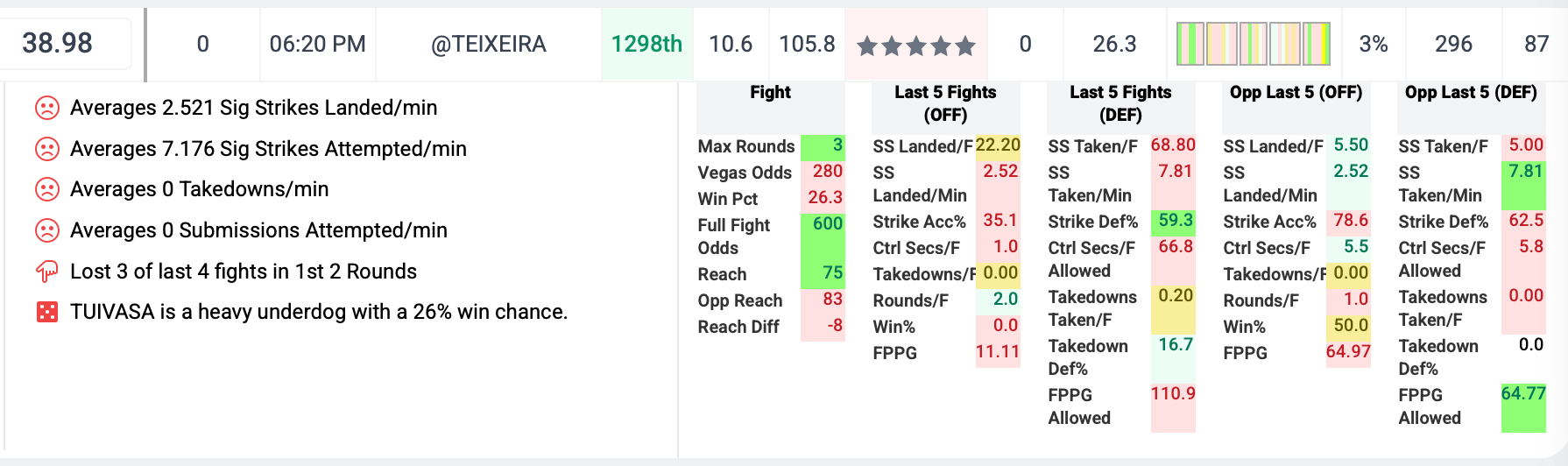 Tuivasa: DK: $7.1k | Teixeira: DK: $9.1k